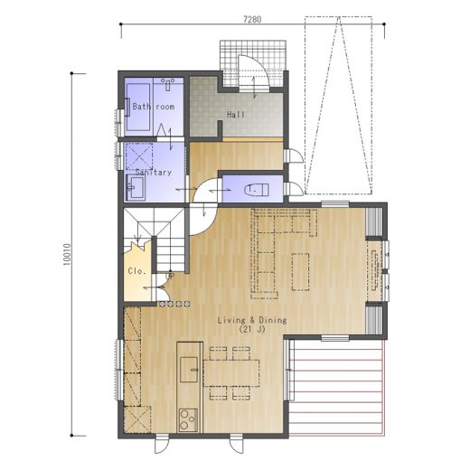 【間取り・注文住宅プラン】開放感ある吹き抜けがあり、大きなLDKがある4LDKの間取り
