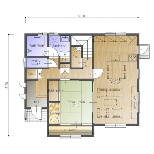 【間取り・注文住宅プラン】和室のつながった広いリビングと、アイランド型キッチンの楽しい4LDKの間取り