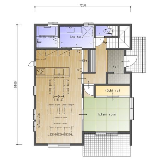 【間取り・注文住宅プラン】LDKの隣に書斎がある3LDKの間取り