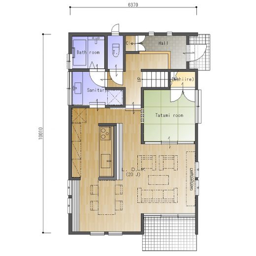 【間取り・注文住宅プラン】ゆとりのある玄関と和室、アイランド型キッチンを配置した4LDKの間取り