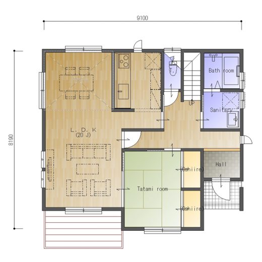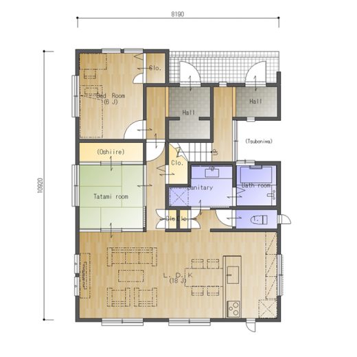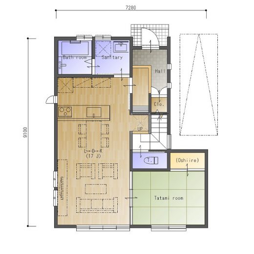 【間取り・注文住宅プラン】和室のつながった広いリビングと、北側に大きな吹き抜けのある4LDKの間取り