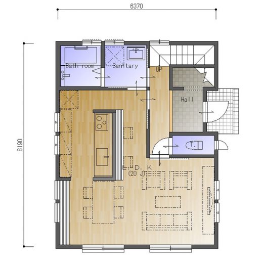 【間取り・注文住宅プラン】20帖の広いLDKと6帖以上の洋室3室と、各部屋を大きめに取った3LDKの間取り