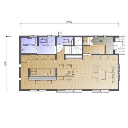 【間取り・注文住宅プラン】アイランドキッチンと、吹き抜けのある3LDKの間取り