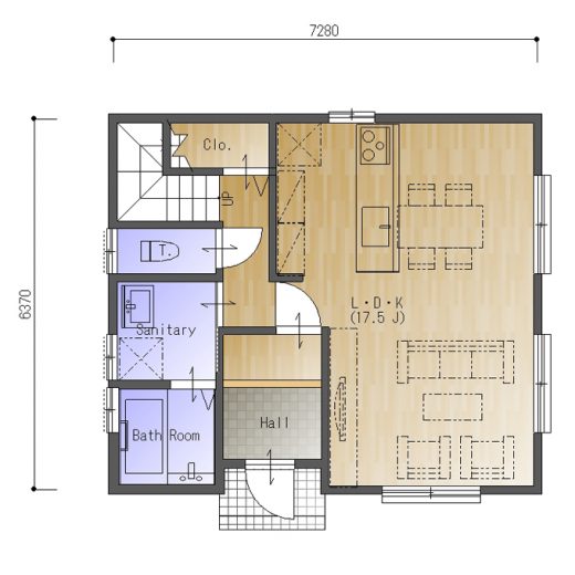【間取り・注文住宅プラン】LDKを充実させたリビング階段ある3LDKの間取り