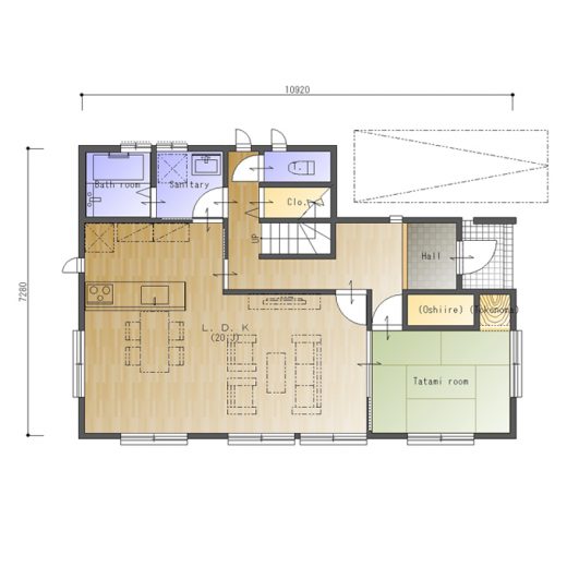 【間取り・注文住宅プラン】リビングとつながった和室とカーポートのある4LDKの間取り