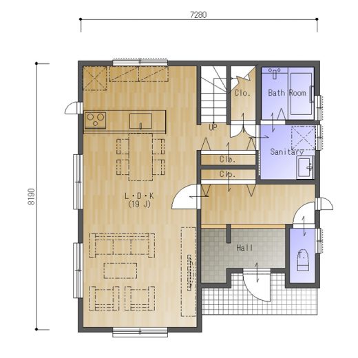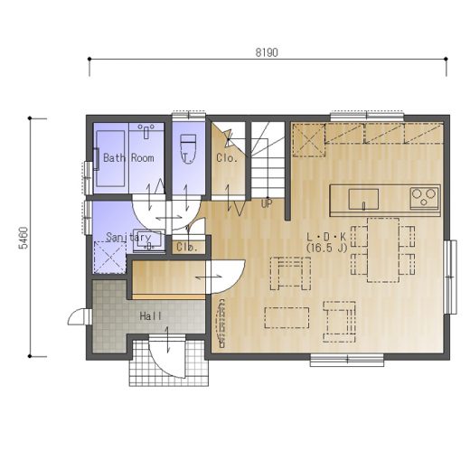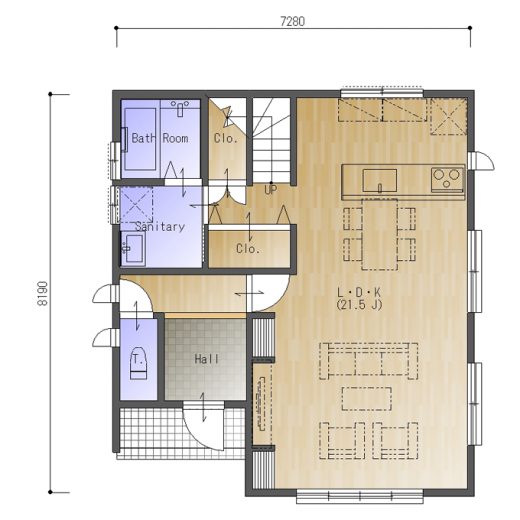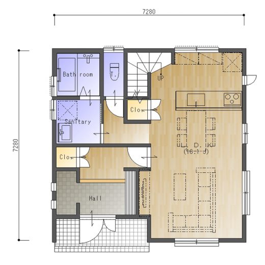 【間取り・注文住宅プラン】LDKを充実させたリビング階段ある3LDKの間取り