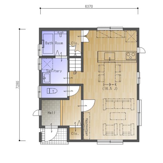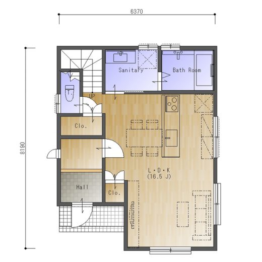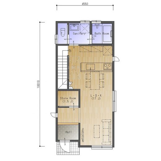 【間取り・注文住宅プラン】一階のリビングを広くとったリビング階段の3LDKの間取り