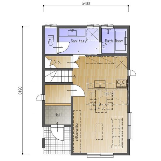 【間取り・注文住宅プラン】コンパクトな敷地に吹き抜けなどの空間の楽しさを加えた2LDKの間取り