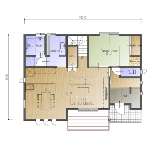 【間取り・注文住宅プラン】カーポートと和室と繋がった広いリビングのある3LDKの間取り