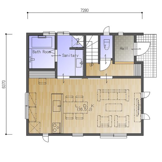 【間取り・注文住宅プラン】大きなバスコートのある4LDKの間取り