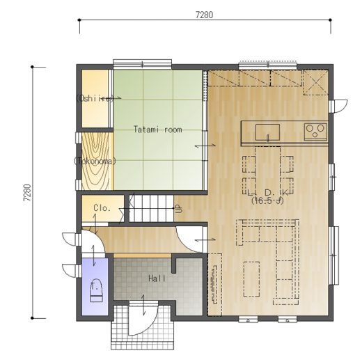 【間取り・注文住宅プラン】リビングとつながった和室とカーポートのある4LDKの間取り