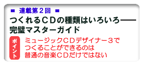 なお、ミュージックCDデザイナー3では、CD−Extraのオーディオトラックを取り込むことができますが、CD−Extraを制作することはできません。