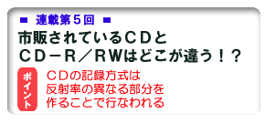 さて、この「ピットによってデジタルデータを記録する」という基本的な原理は、市販されているCDでも、CD−R/RWドライブで作られたCDでも、変わりはありません。