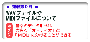 最近のパソコンでは、音楽を再生できるようになっています。ふだん何気なく楽しんでいる音楽ですが、実は2種類のデータ形式に大きく分けることができます。それが、「オーディオデータ」と「MIDIデータ」です。