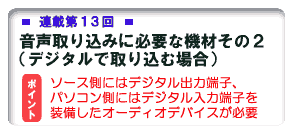 デジタル出力端子がついたオーディオ機器を持っている人は、ぜひデジタル取り込みにチャレンジしてみてください。