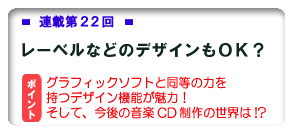 音楽CDの作成は、音楽CDや外部入力からオーディオデータを取り込み、CDライティングソフトに登録。これをCD-R/RWディスクに、音楽CDフォーマットで書き込むという手順です。しかし、これだけではデータをバックアップしたCD-R/RWディスクと区別がつかず、市販の音楽CDと比べるとかなり見劣りしてしまいます。