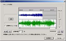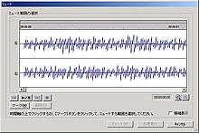 | また、コマンドを実行した状態では標準的な波形が表示されていますが、ズームボタンの下方にある「精細表示」のチェックボックスにチェックをすることにより、さらに緻密に音楽波形を測定した波形を表示させることができます。