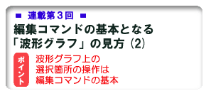 波形グラフを利用した編集において、ポイントとなる点は、波形として表示された楽曲データに対して、編集コマンドを適用するための「箇所」や「範囲」を指定(選択箇所の指定)する操作です。