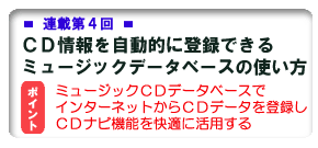 という2ステップのみで、情報検索が可能です。また、環境設定でCDDBに自動的に接続する設定にしている場合は、音楽CDを挿入するだけで自動的に検索までが行なわれます。