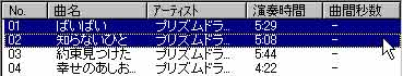 仮想CDデッキのトラックリストから、コマンドを使いたいトラックを選択します。自動調整機能を使う場合、複数のトラックを選択する必要があります。