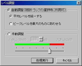 なお、1曲のみ選択した場合は、手動調整しか使うことはできません。自動調整は複数の曲の音量を比較して調整を行なうためです。 |