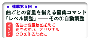 ジュークボックスCDを作る際に、最小限の手間でレベル調整を実現するTipsをご紹介します。