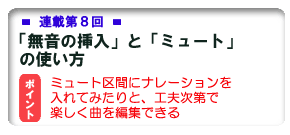 なお、「無音の挿入」や「ミュート」の活用方法ですが、「無音の挿入」はトラックの分割を行なう際の精度を上げるときに便利です。