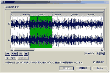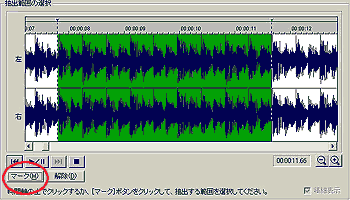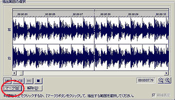 ここで再生ボタンをクリックしてトラックの演奏を聴きながら、[マーク]ボタンをクリックすると抽出の開始位置が設定されます。