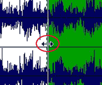波形グラフは左端がトラックの開始時間、右端がトラックの終了時間を表しています。また、波形は上下幅が大きいほど音量が大きいことを表しています。