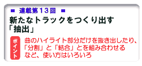 曲のハイライト部分だけを抜き出したり、第14回、15回で紹介する「分割」と「結合」とを組み合わせて、ロングバージョンを作るなど、使い方はいろいろあります。ぜひ「抽出」コマンドを使いこなせるようになりましょう!
