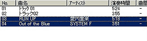 仮想CDデッキのトラックリストから、結合したいトラックを選択します。この場合、2つ以上のトラックを選択しましょう。