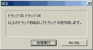 すると[結合]ダイアログボックスが表示されます。ここで、結合処理を行なうトラック番号が表示されるので確認をして、よければ[処理実行]ボタンをクリックします。