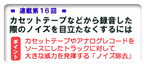 「ノイズ除去」コマンドは、試聴する場所を選んで10秒間の試聴が行なえます。通常は何も設定せず曲の冒頭の10秒間の試聴でかまいませんが、特にノイズが気になる部分がある場合はスライダーでその箇所に試聴開始位置を移動させて繰り返し確認することができます。