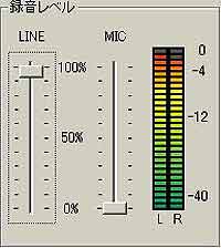 [取り込み]タブのLINEボタンをクリックした後、再生・録音デッキの[録音]ボタンをクリック。これで録音スタンバイ状態になるので、ソースの再生を開始して録音レベルの調整を行ないます。録音レベルの調整は、ライン入力端子やデジタル入力端子を利用している場合はLINEのスライダー、マイク入力端子を使っている場合はMICのスライダーを使います。スライダーは、上に上げると入力レベルが上がります。