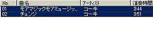 ミキシング処理が行われると、仮想CDデッキのトラックリストの一番最後に「(混合されるトラック名[トラック番号の小さい方])と(混合するトラック名[トラック番号の大きい方])のミキシング」という名前で新しいトラックが作成されます。 |