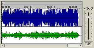 波形グラフは左端がトラックの開始時間、右端がトラックの終了時間を表して、波形は上下幅が大きいほど音量が大きいことを表しています。 |