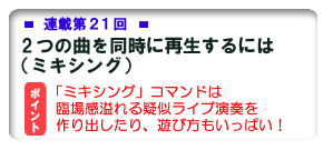 「ミキシング」コマンドは、指定した2つのトラックの音を同時に再生したかのように混ぜ合わせて1つのトラックにするものです。