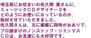 ――そうした要望はどんどん教えてほしいですね。佐久間さんはミュージックCDデザイナー3からお使いですが、実際に最初のバージョンからはそうした要望から生まれた、多くの機能が増えているんです。