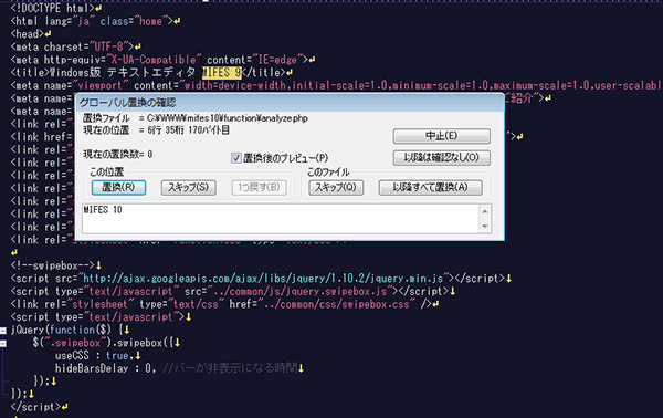プログラムの変数名の一括変更、HTMLのテンプレート部分の一括修正など、強力な編集ツールとして活用できます。