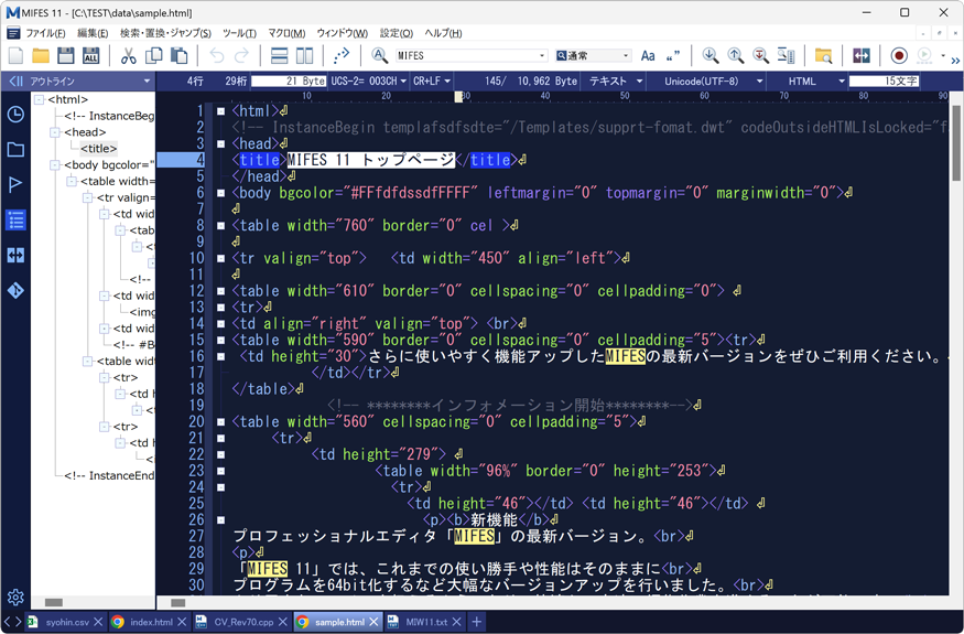 プログラム開発、Web制作、原稿作成、ログ/CSVデータ、バイナリなど幅広いテキスト編集に。