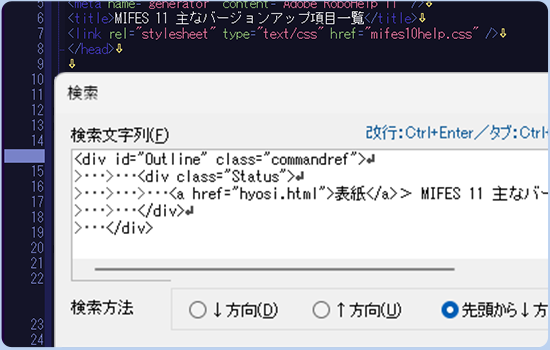 正規表現を含む4つの検索方法と豊富なオプションで目的の文字列を素早く検索。