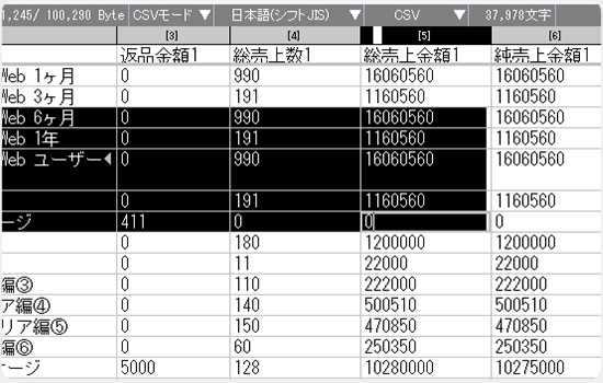 表計算ソフトではテキストファイルのまま扱いにくいレコードデータも手軽に編集。