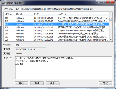 これから編集するファイルの更新/チェックアウトや、編集後のコミット/チェックインの操作がMIFESからできるようになります。