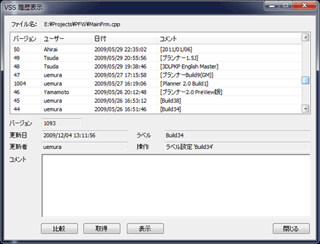 MIFESの編集ウィンドウやリストウィンドウから、チェックアウト/チェックインや履歴の表示、旧バージョンとの内容の比較が可能です。
