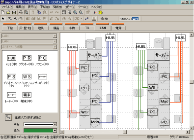 オフィスレイアウトと密接な関係を持つ、電話、LAN、電源配線について、それぞれ専用のレイヤを装備。オフィスのレイアウトについての情報すべてを統合した管理が可能です。