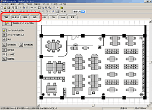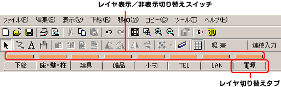 フロアや机などの備品、電気、電話、LANなどを別々に管理できるマルチレイヤ編集機能 |