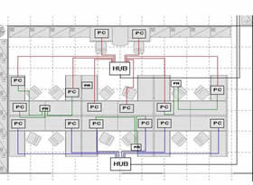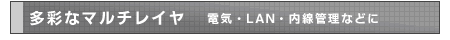 オフィス施工に必要な電話、LAN、電源の配線図をそれぞれ専用のレイヤで作成、オフィスレイアウト情報から配線情報までひとつのデータで管理することができます。また、天井レイヤで照明や空調などのレイアウトを作成して、すべてのオフィス環境を考慮しながらオフィスレイアウトの作成・管理ができるので、顧客から施工業者との打合わせまで幅広くご利用いただけます。