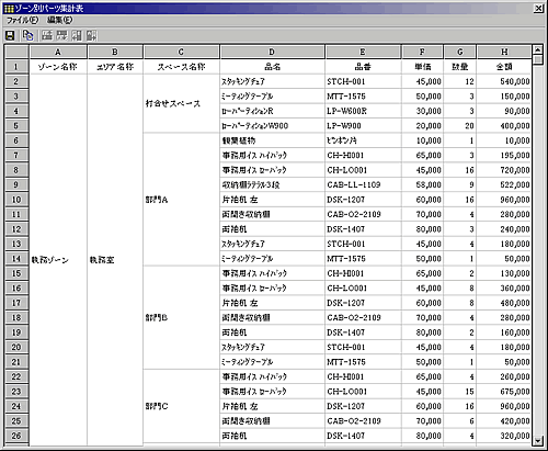 ゾーン別パーツ集計画面