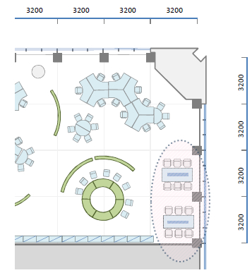 ということで割と広いスペースが必要になりそうです。少なくともソファとテーブルの4人がけが2組。