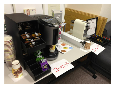 下のフロア(5階)に置かれたコーヒーサーバー、1杯ずつ入れられるコーヒーマシーンから、良い香りが漂ってきます。